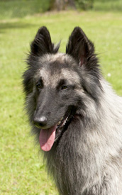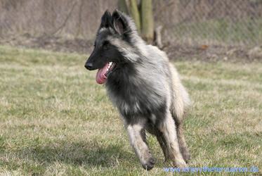 Knapp 2-jähriger, noch in der Entwicklung stehender Rüde, vorzügliche Gesamterscheinung, leider heute nicht in Ausstellungskondition, mittellanger, ausdrucksvoller Kopf, mit vorzüglicher Maske, vorzügliche Kopflinien, eleganter Stopp, vorzügliche, mandelförmige mittelbraune Augen, mittelgroße Ohren, etwas breit an der Basis, vorzüglich angesetzte und getragene Ohren, sehr schöner Hals, sehr schöne Ober- und Unterminie, sehr schön gewinkelte Vor- und Hinterhand, leichte Schwäche im Vordermittelfuß, vorzügliches Haarkleid, dem es heute leider an Fülle fehlt, sehr schönes Grau mit vorzüglicher Charbonnage, vorzügliches Gangwerk mit sehr viel Schub. Der Hund braucht noch Zeit für seine Entwicklung.