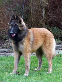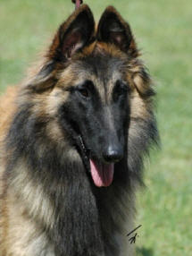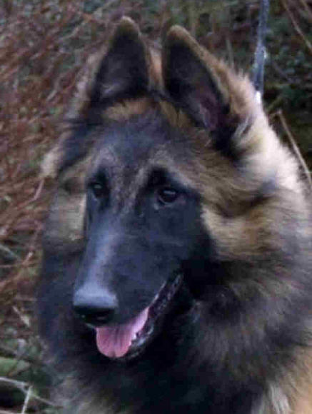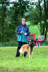 19 Monate, komplettes Scherengebiss, mittlere Größe, femininer Typ, mittellanger Kopf, Unterkiefer sollte etwas stärker sein, gute Maske, gute Pigmentierung, dunkle mandelförmige Augen, Ohren sollten dreieckiger sein und etwas steiler angesetzt, gute Halslinie, kurzer Körper, Kruppe etwas abfallend, vordere Winkelungen etwas steil, hinten gut, gute Knochenstärke und Pfoten, Fell von guter Qualität und Farbe, schönes Temperament, seitliche Bewegung gut, vorne etwas paddelnd
