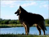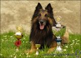 5j alter Rüde von guter Größe und Format, schöner Kopf und Ausdruck, korr. obere und untere Linie, Rute etwas kurz, flotte freie Bewegung, korrektes Wesen und Haarkleid.