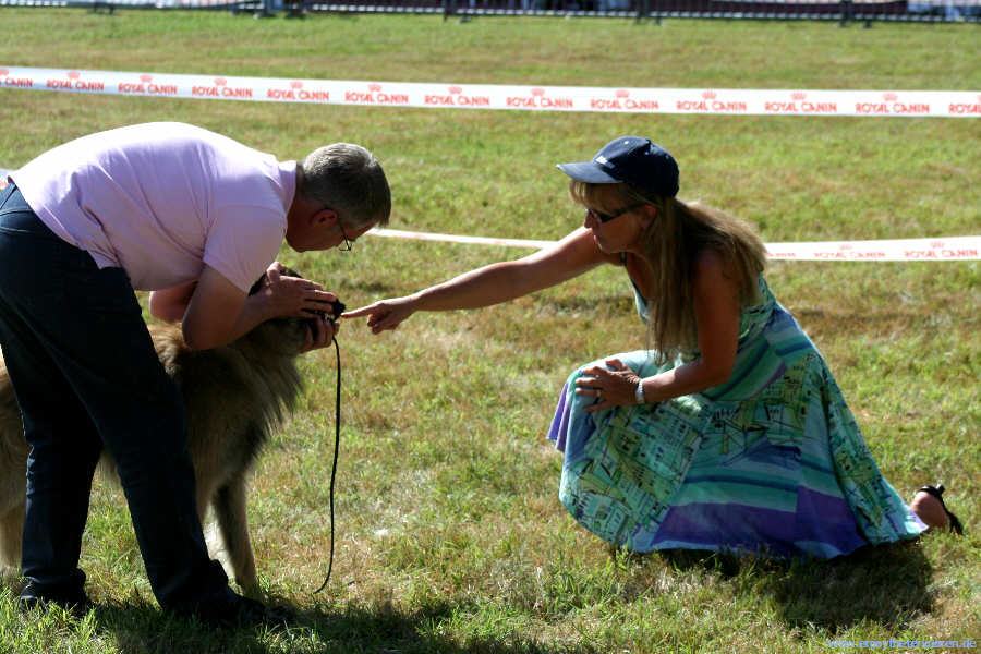 - über Chuck von der Feldstiege gibt es auch nur gutes zu berichten. Am Freitag bestand er auf eindrucksvolle Art und Weise CSAU, TAN ( als einziger der deutschen Bewerber) sowie mit dem TATD auch den sogenannten Championatstest. In der Arbeitsklasse erzielte er zudem noch sein Excellent, was Ihn dazu berechtigte, am Sonntag zur Selektion für das Sujet Recommande anzutreten. Leider hat es für Ihn dazu in diesem Jahr nicht gereicht, aber auf diese Leistung kann man wahrlich stolz sein
